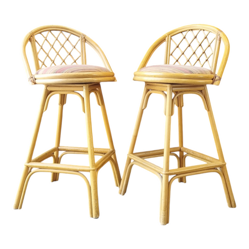 PAIR OF VINTAGE CANE SWIVEL KITCHEN STOOLS
