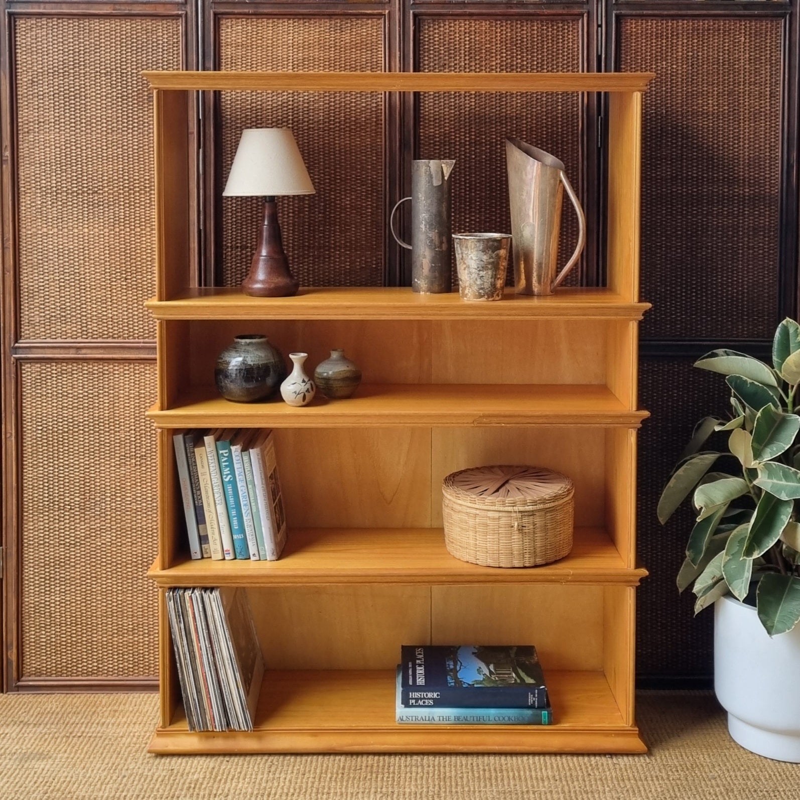- Unique bookcase, made from solid pine with hardwood trim edging.