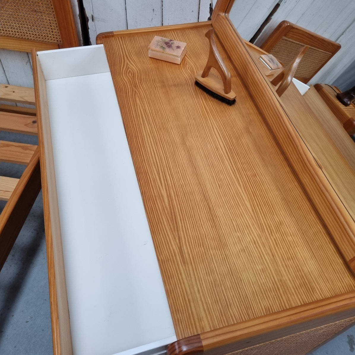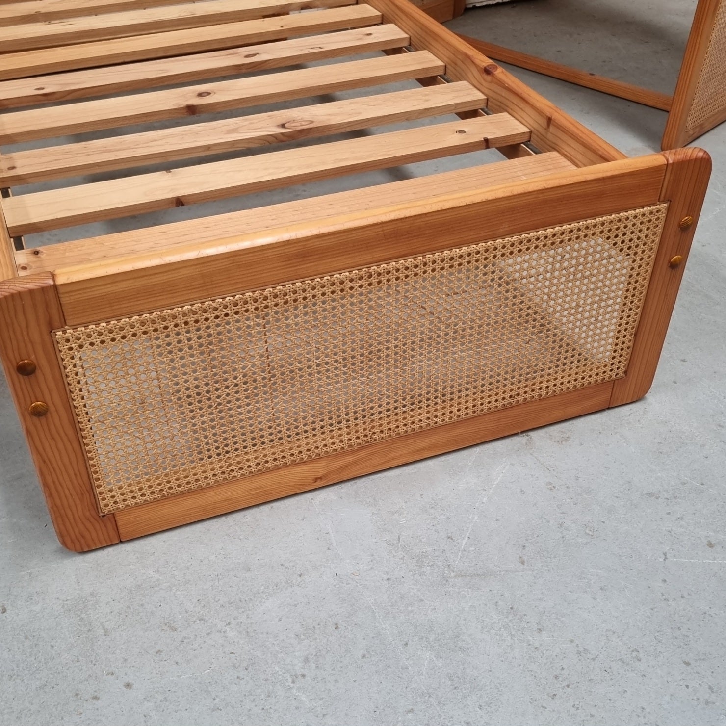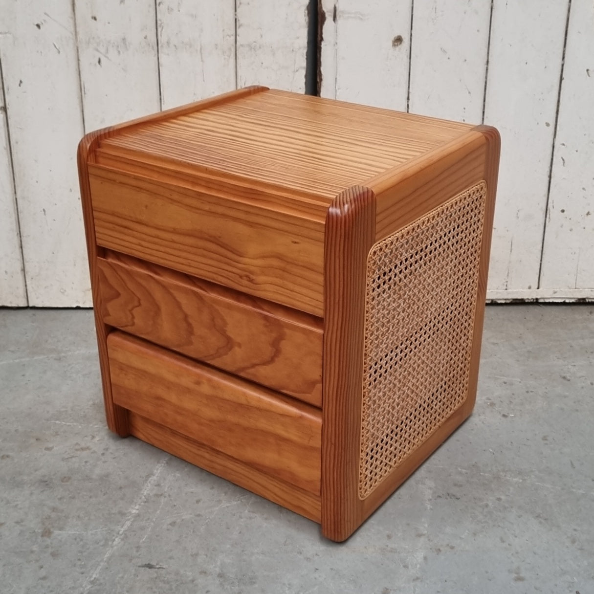 - Solid and veneered pine with rattan panels 3 piece bedroom suite.