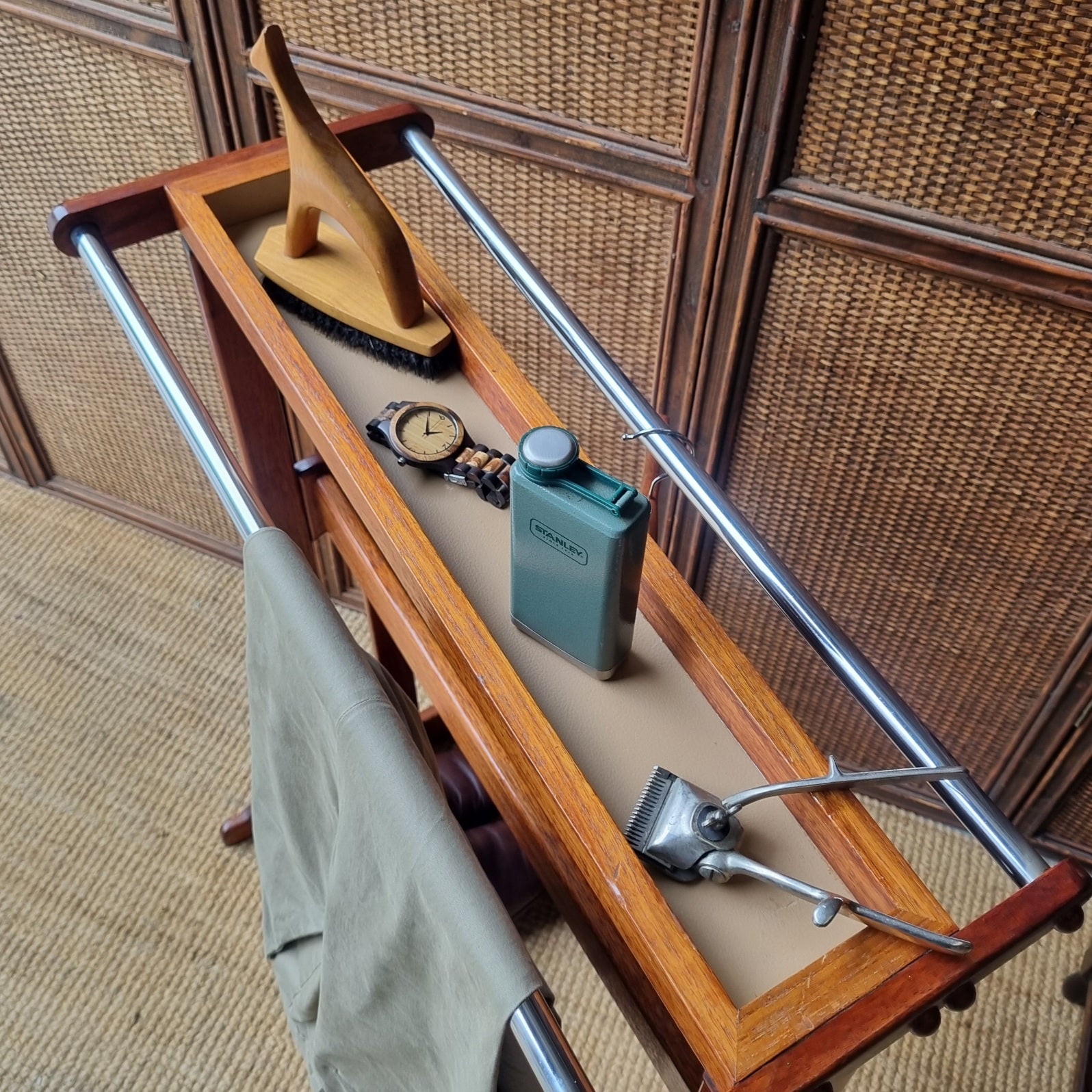 - Twin metal hanging rails for trousers, shirts and jackets.